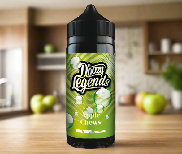 Doozy Legends Apple Chews 100ml E-Liquid Shortfill. Based on the Extreme Sour Apple Chews. Set your taste buds alight with this memorable sweet and sour tingle of crisp Green Apples. Bringing back the joy of unwrapping those tiny chewy squares and you just have one then another and another…